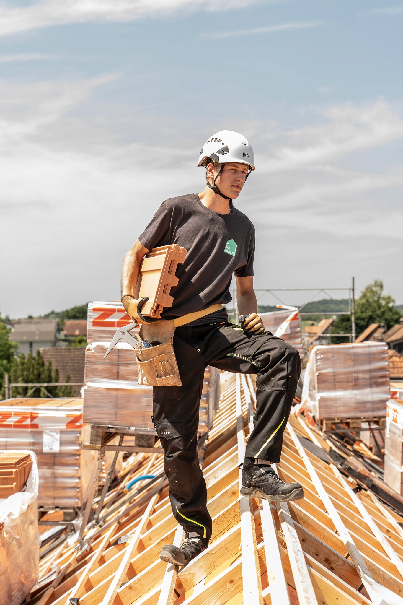 Für die Nachwuchskampagne von Gebäudehülle Schweiz wagten wir uns zwei Tage lang auf die Dächer – bei knackigen 35 Grad und ohne Schatten. Statt die Hitze zu verstecken, machten wir sie zum Stilmittel: Warmes Grading, Film-Körnung und treibende New-Wave-Beats schaffen einen analogen Sommer-Vibe. Um die Natürlichkeit zu bewahren, verzichteten wir auf Interviews am Set und setzten stattdessen auf professionelle Sprecher:innen. Auch visuell halfen wir etwas nach: Da die Dächer oft niedriger waren als der Titel «Hoch-Hinaus» vermuten lässt, erzeugten wir die nötige Höhe durch bewusstes Framing und Perspektive. Der Output ist eine atmosphärische Video- und Fotokampagne in drei Landessprachen.